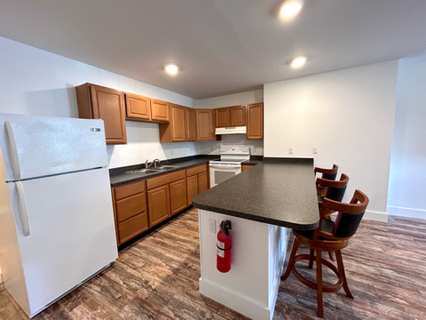 This 2-bedroom, 2.5-bathroom apartment, located 1.5 blocks from Bloomsburg University, is an amazing and unique apartment. The downstairs living/kitchen area is open and spacious with hardwood flooring. The downstairs has its’ own laundry room and half bathroom. Upstairs are two very spacious bedrooms, each with a large closet and a fully attached tiled bathroom; this design makes these apartments an absolute joy to live in. This thoughtful design makes off-campus living fun, enjoyable, and extremely comfortable. 453 is fully furnished, and off-street parking is available at this location.